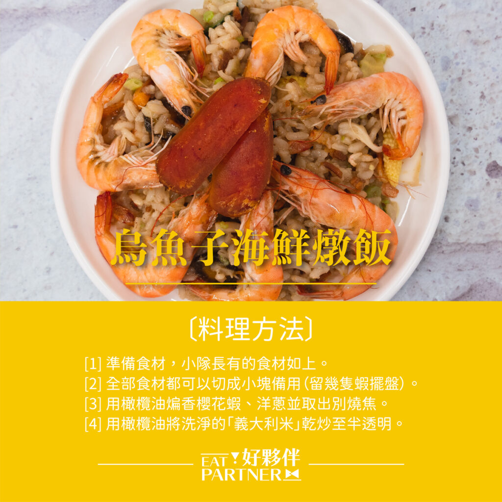 那麼小隊長該怎麼做呢?整理一下手邊有的食材:櫻花蝦、烏魚子、白蝦、軟絲、高湯!好的,那就沒有問題了!雖然創造的風味稍微與煙波飯店的版本不太相同,其中落差最大的就是扁魚了,所以充其量就叫做山寨版吧!