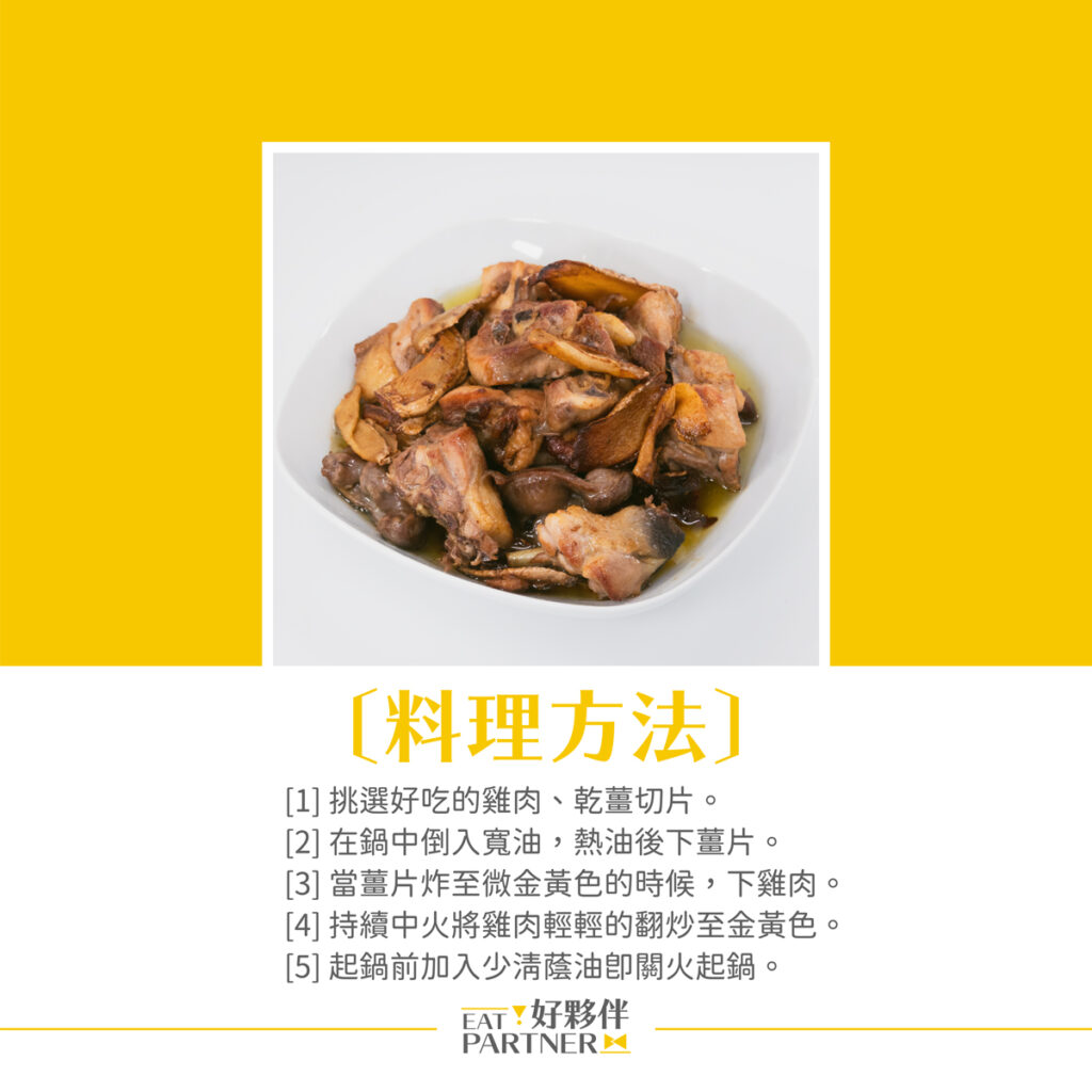 [1] 薑片與雞肉一定要炒/炸至夠乾才好吃!