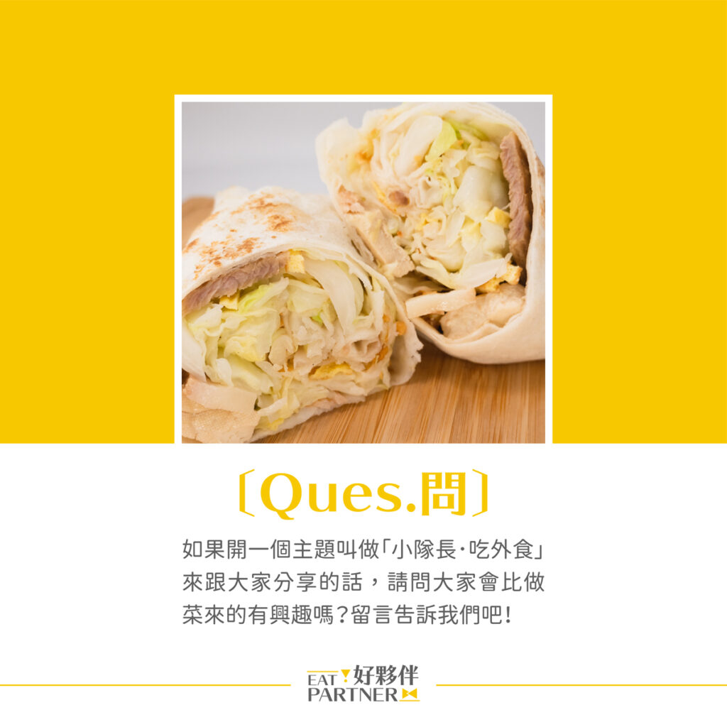 如果開一個主題叫做「小隊長.吃外食」來跟大家分享的話,請問大家會比做菜來的有興趣嗎?留言告訴我們吧!