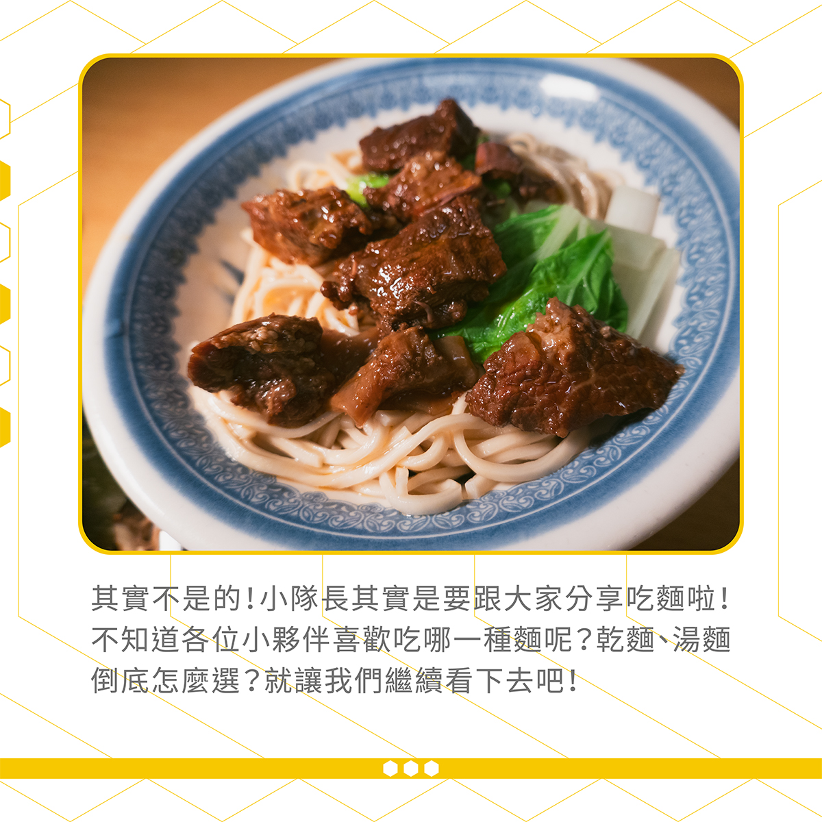 小隊長帶大家來吃牛肉麵啦!小夥伴們會不會想好奇問說:「咦?牛肉麵有什麼好介紹的?難不成小隊長要改行美食部落客了嗎?」哈哈哈,其實不是的!小隊長其實是要跟大家分享吃麵啦!不知道各位小夥伴喜歡吃哪一種麵呢?