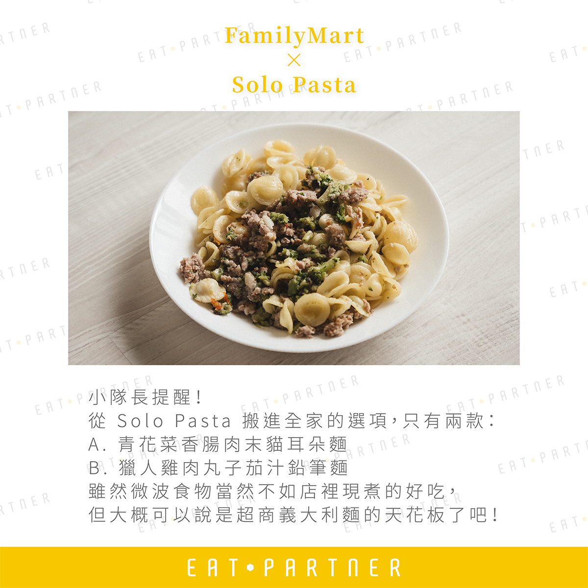 那就是 FamilyMart 這次與 Solo Pasta 聯名啦!